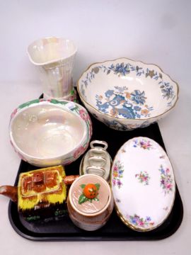 A tray of Maling lustre basket Minton Marlow oval porcelain plates, Mason's fruit bowl etc