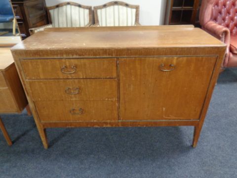 A mid 20th century mahogany cocktail sideboard fitted with three drawers