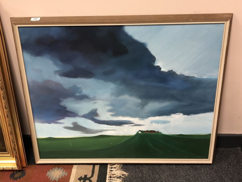 Continental school : storm clouds over farmland, oil on canvas 84cm x 65cm