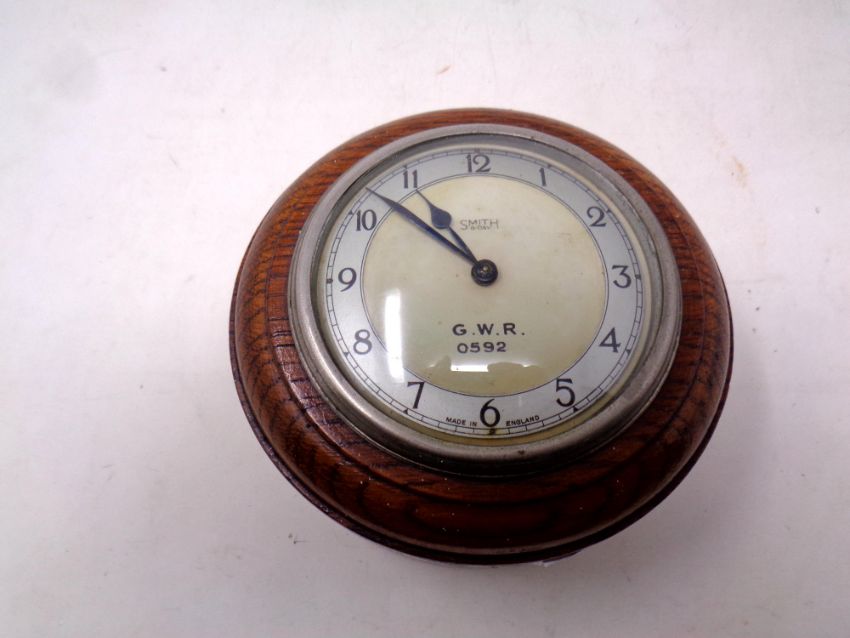 An Edwardian oak Smith's 8-day wall clock with GWR dial numbered 0592