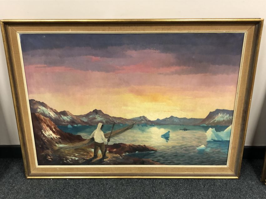 Continental school : figure with a canoe, oil on canvas 96cm x 66cm