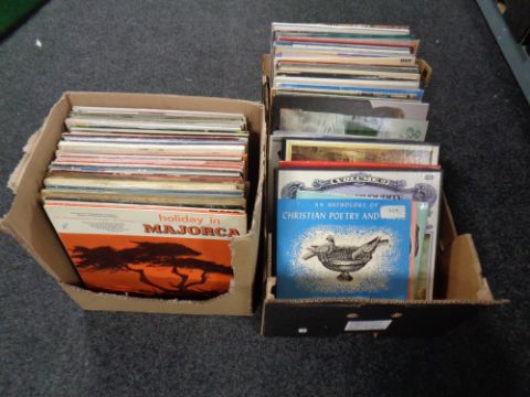 Two boxes of vinyl lps and box sets include musicals, easy listening etc