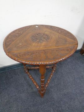 An Edwardian carved beechwood flap sided occasional table
