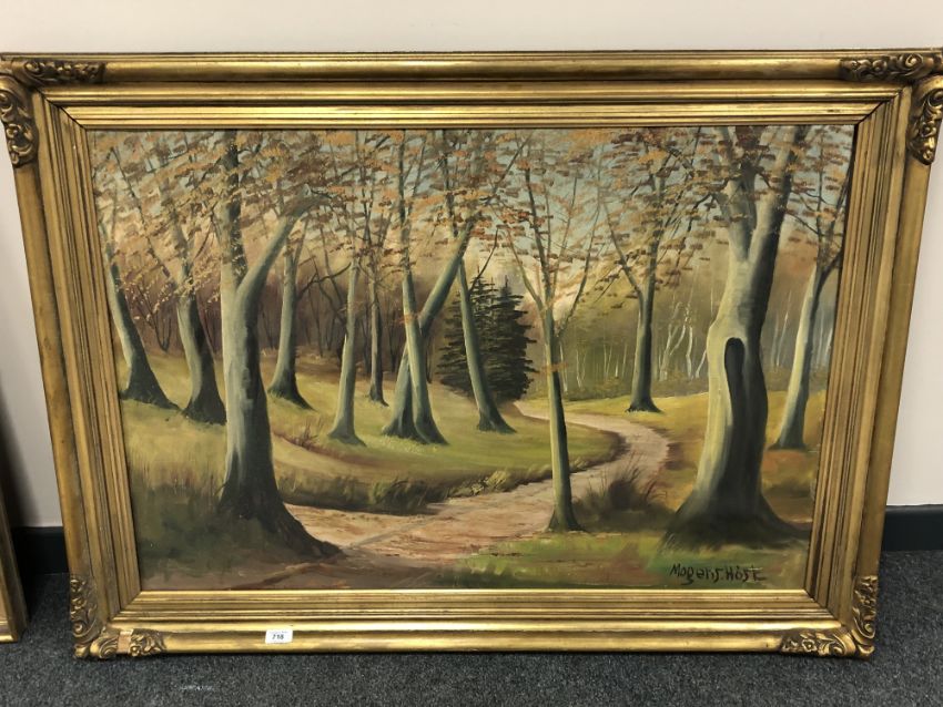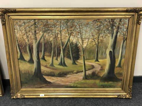 Continental school : a track leading through woodland, oil on canvas 95cm x 65cm