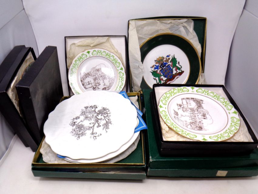Two crates of boxed collector's plates, continental and English tea ware etc