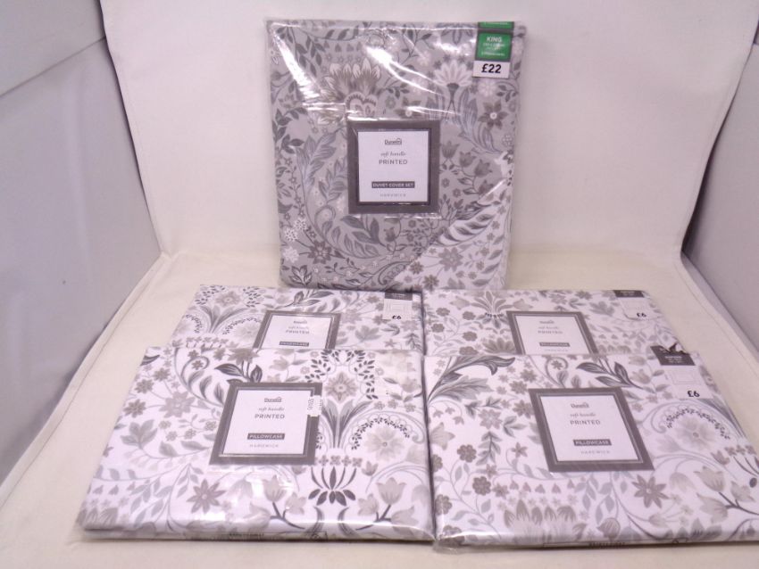 A Dunelm duvet cover set in Hardwick patter and four pillow cases