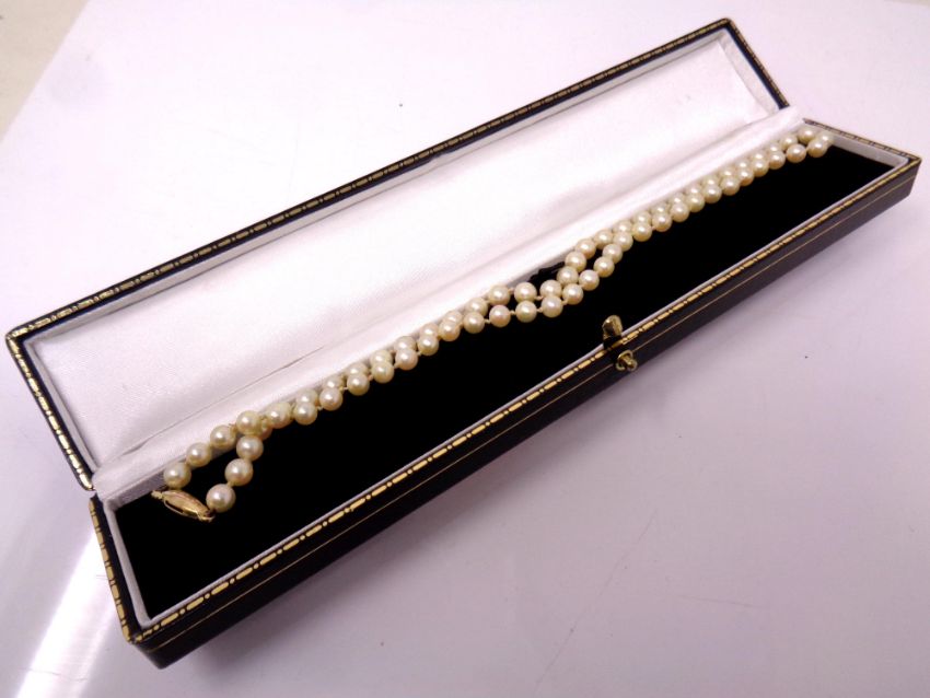 A cultured pearl necklace with 9ct gold clasp.