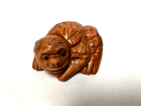 A Japanese carved fruitwood netsuke - Giant Turtle.