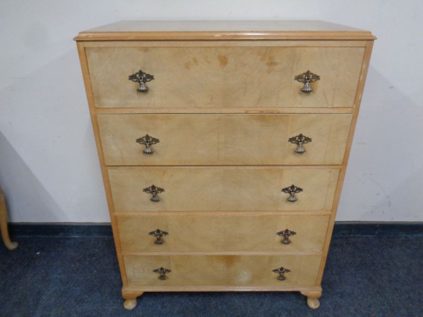 A six piece walnut Queen Anne style bedroom suite