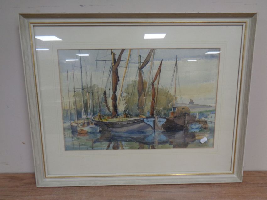 Frank Norman : Boats in still water, signed, framed.