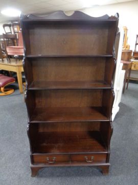 A set of mahogany open shelves fitted with drawers
