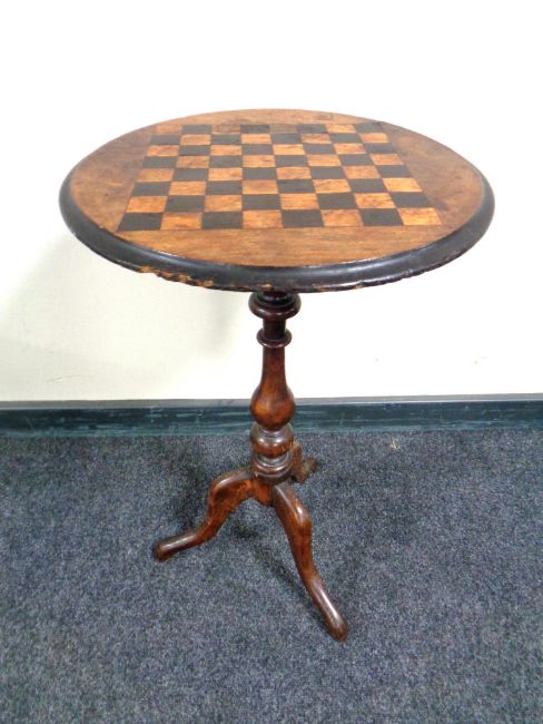 A Victorian mahogany chess board topped pedestal wine table