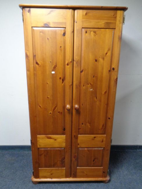 A pine double door wardrobe