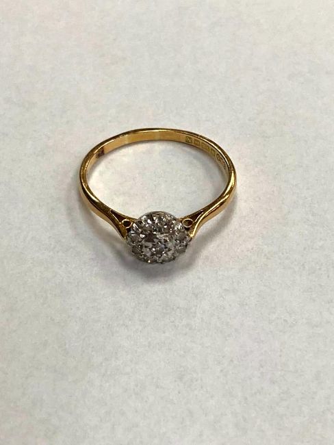 An 18ct yellow gold diamond cluster ring, 2.9g.
