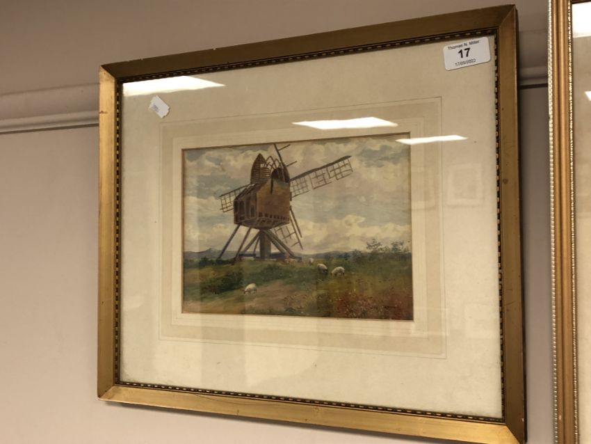J W Smith (19th/20th Century) : The Weather-Beaten Windmill, watercolour, signed, dated 1927, 17 cm x 24 cm, framed.