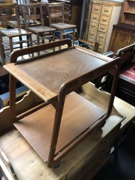 A mid 20th century two-tier teak trolley with lift off tray
