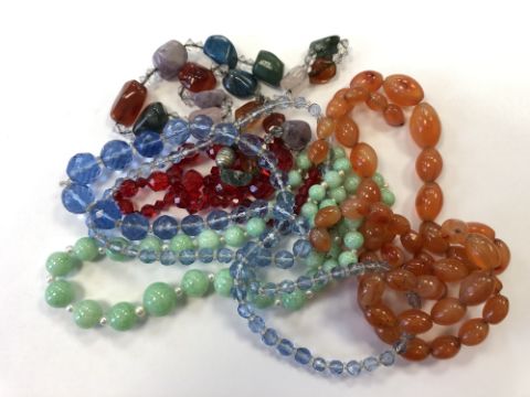 A collection of hardstone and other necklaces