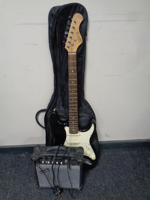 An Elevation electric guitar together with a Gear 4 Music S15G guitar amplifier.