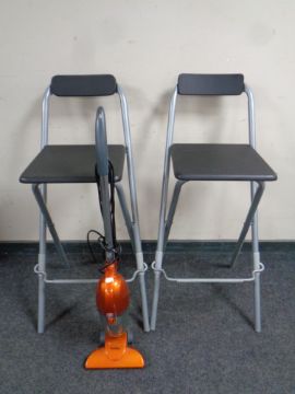 A Von Haus electric vacuum together with two folding breakfast bar stools