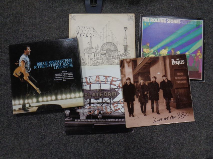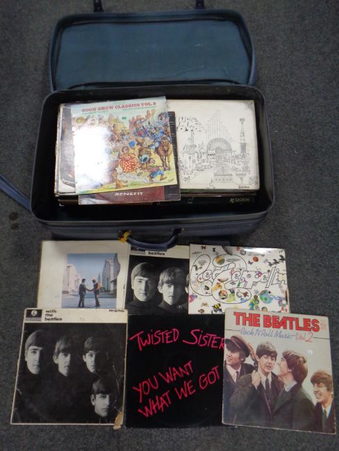 A suitcase containing vinyl LPs to include Pink Floyd, The Beatles, Rolling Stones, Bruce Springsteen etc.