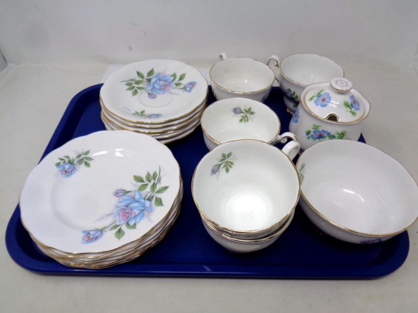 A tray containing nineteen pieces of Royal Standard Fascination bone tea china.