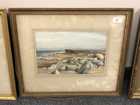 Stanley Brinton : Filey Brigg (Low Tide),watercolour, signed, dated 1933, 22 cm x 31 cm, with Laing Art Gallery & Museum label verso, framed.