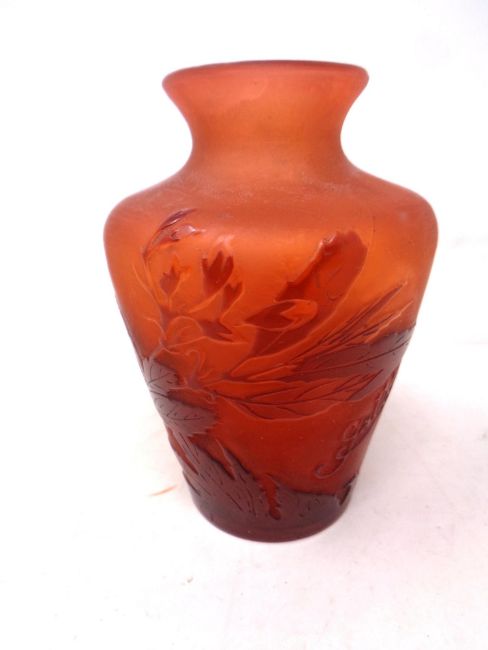 A French Galle embossed vase. Height 9.6 cm