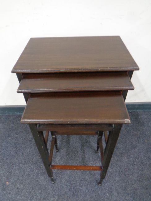 A reproduction mahogany nest of three tables