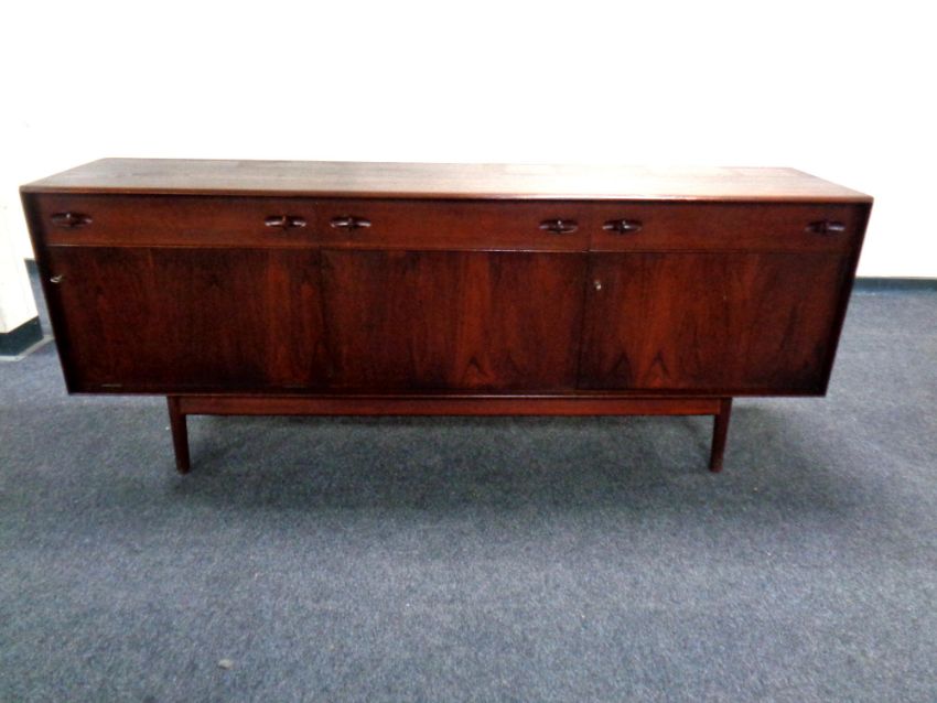 A 20th century Dalescraft teak low sideboard fitted cupboards and drawers