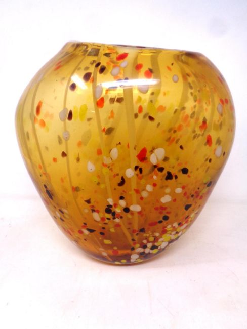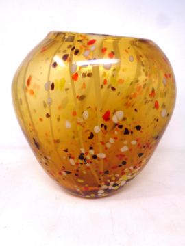 An art glass oval amber vase with speckled decoration (height 27 cm)