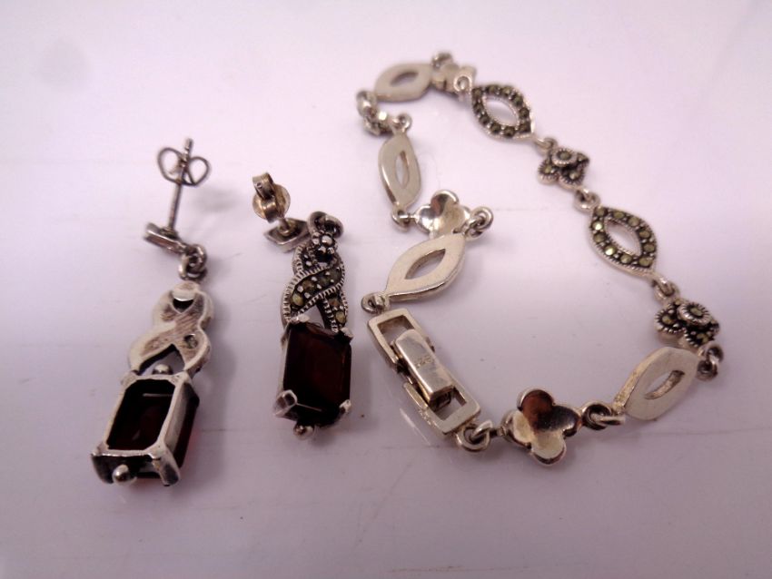 A Marcasite bracelet and earrings.