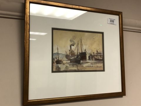 Peter Knox (b. 1942) : Boats Moored off a Jetty, watercolour, signed, 12 cm x 17 cm, framed.