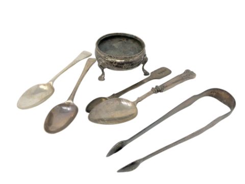 A group of Georgian silver including salt, spoons, tongs etc (6)