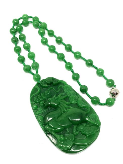 A large good quality jade pendant and necklace