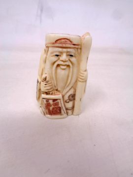 A Japanese bone carving - Village Elder with Scroll.