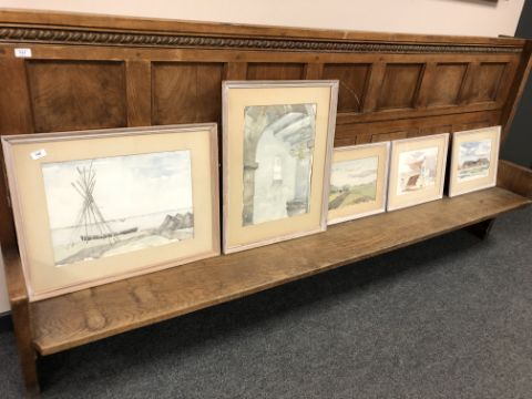 Five continental watercolour drawing depicting buildings and landscapes (5)
