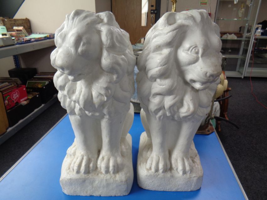 A pair of painted concrete statues, seated lions, height 45 cm