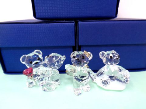 Three Swarovski crystal teddy bears, boxed