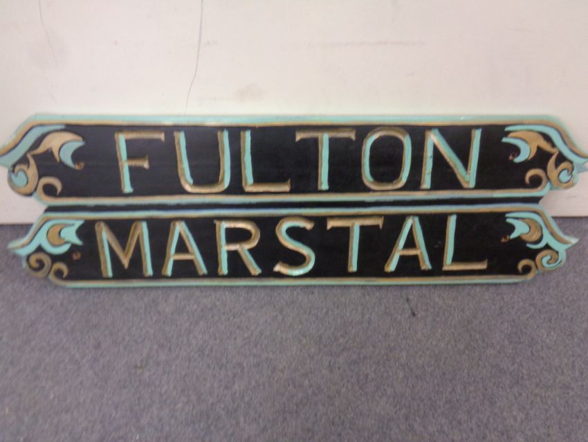 A hand painted wooden sign Fulton Marstal