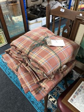 Four pairs of Isle Mill fully-lined pure wool tartan curtains : First pair each curtain being 157 cm wide and 193 cm drop, second pair each curtain also being 157 cm wide and 193 cm drop, third pair each curtain being 264 cm wide and 213 cm drop, the fourth pair each curtain also being 264 cm wide and 213 cm drop (4 pairs, 8 curtains in all).