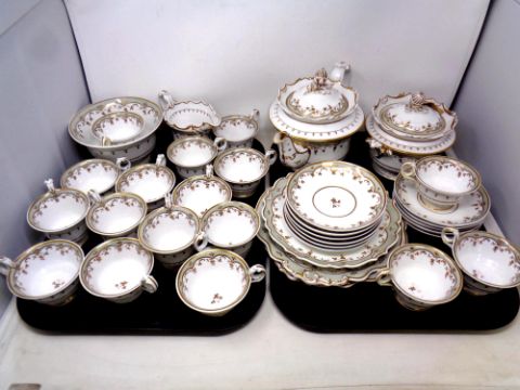Thirty-five pieces of 19th century white and gilt tea china (two trays)