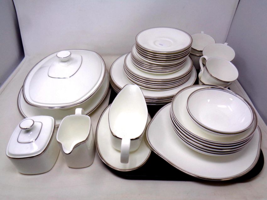 Forty-four pieces of Royal Doulton Platinum Concord tea and dinner china