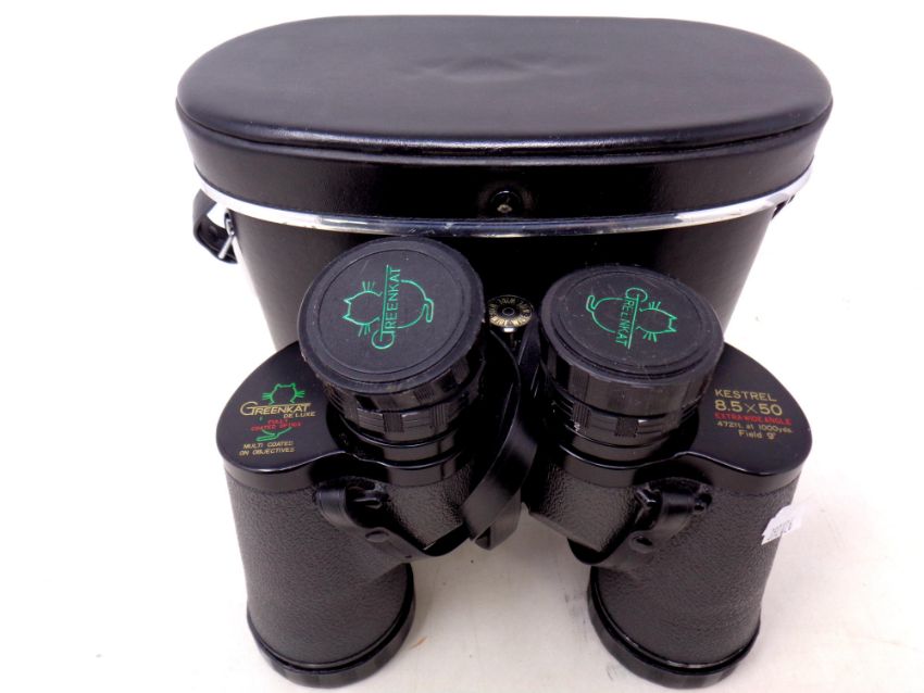 A set of Greenkat Deluxe Kestrel 8.5x50 field glasses in case