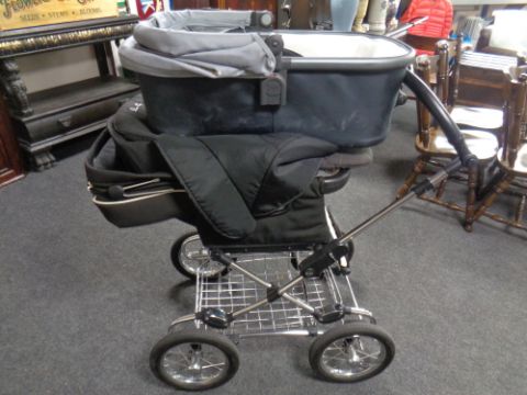 A Silver Cross pram, with Moses basket attachment and spare wheels