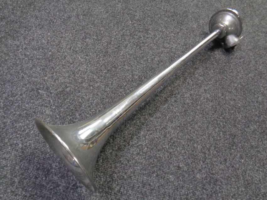 A Groves Products Ltd chromed gramophone horn, length 60 cm
