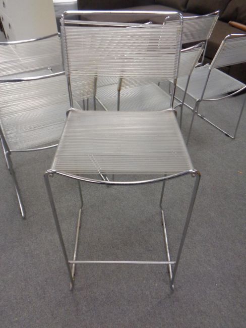 A set of six mid 20th century spaghetti chairs in the style of Giandomenico Belotti and a matching high chair