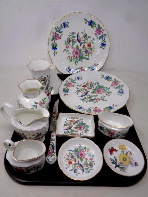 A tray of eleven pieces of Aynsley Pembroke and Royal Worcester cabinet china - comport, cake knife, dishes etc