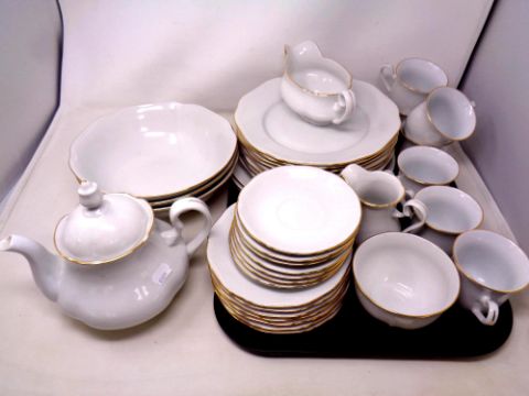 Thirty-nine pieces of Bohemian white and gilt tea and dinner china