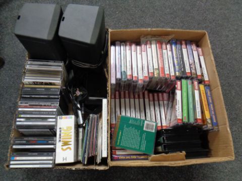 Two boxes of CDs, talking books and BBC TV shows on cassette tape