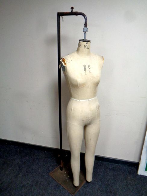 A vintage industrial mannequin by Kennett & Lindesell Limited on adjustable metal stand